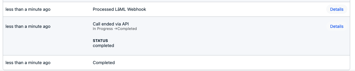 Event views now provide more transparent details when cXML (LaML) calls are updated via the API. These updates are visible either in the /laml-calls view or the /logs/voices view.